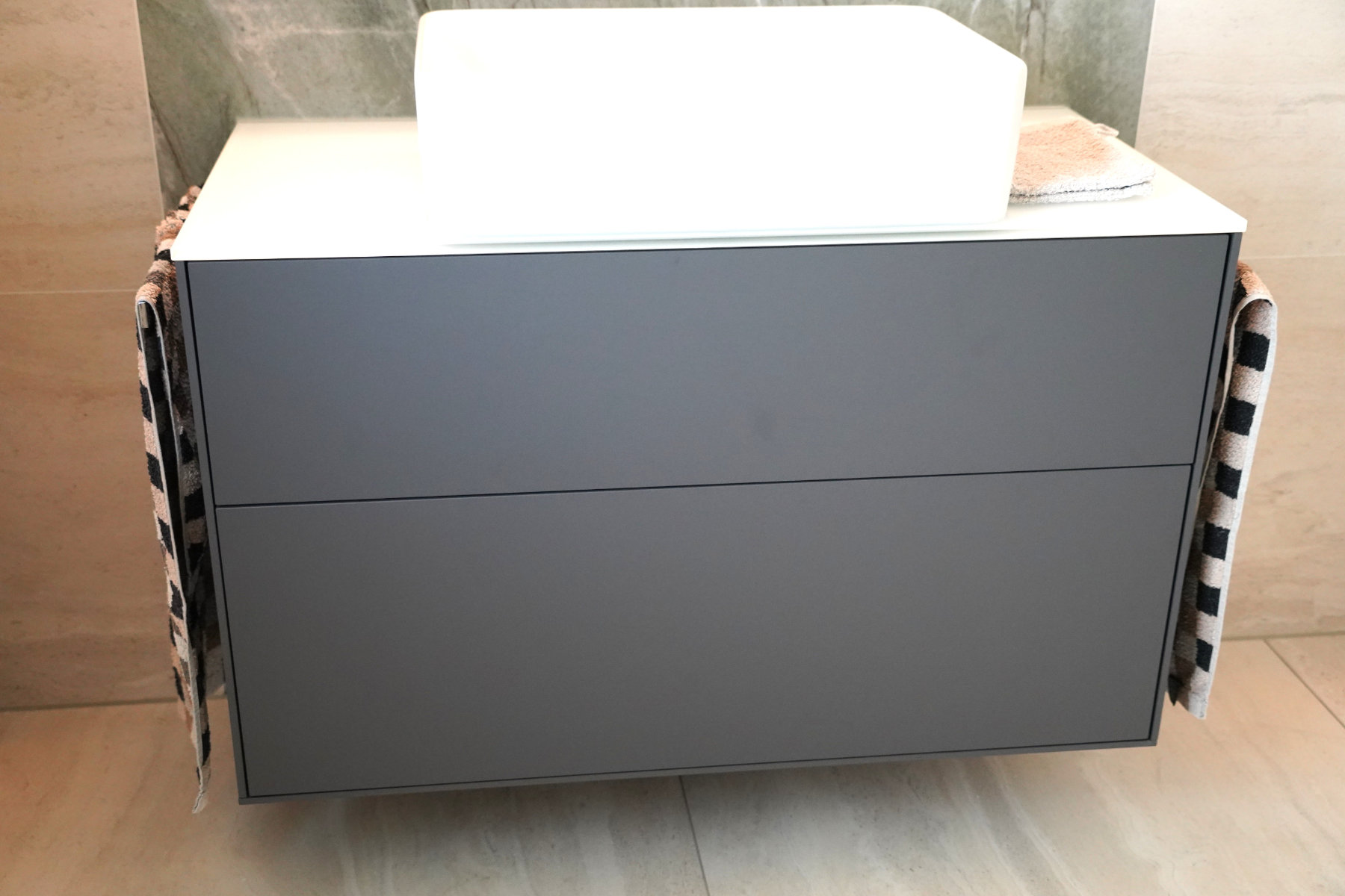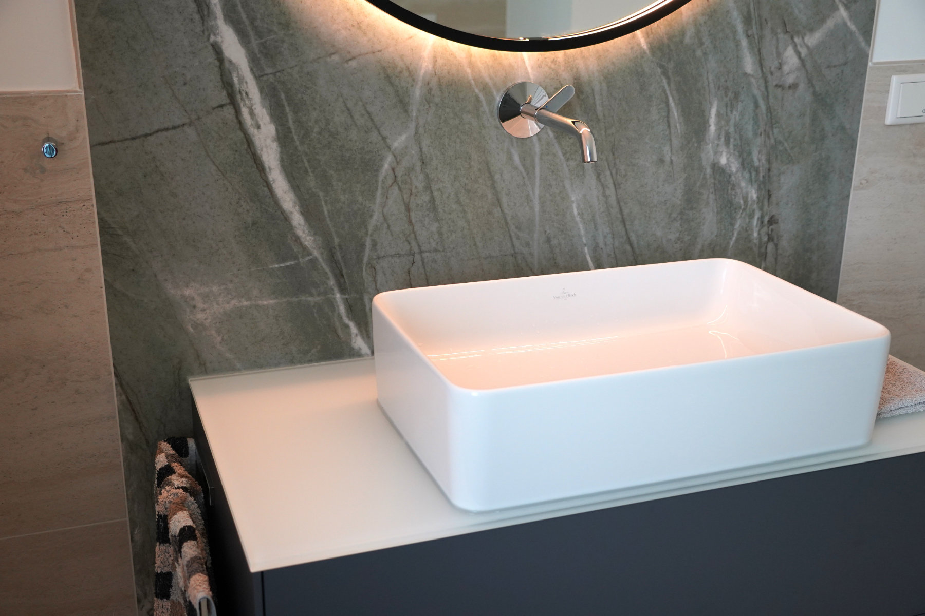 Die Fliesenkombination Tiffany Green und Travertin – farblich das Modernste auf dem Markt.