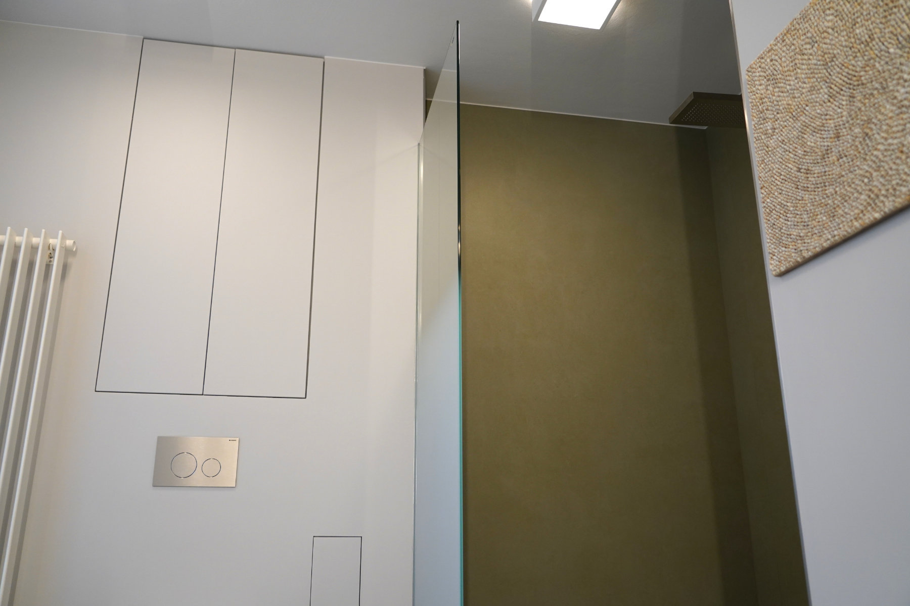 Das alte komplett weiße Bad im minimalistischen Bauhaus Stil wird zum italienischen Designer Bad.