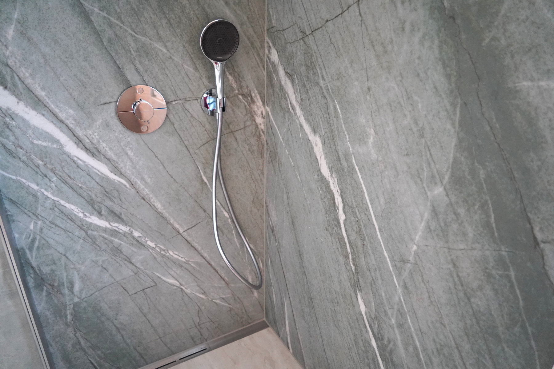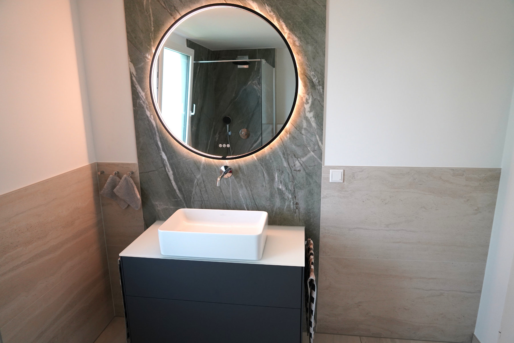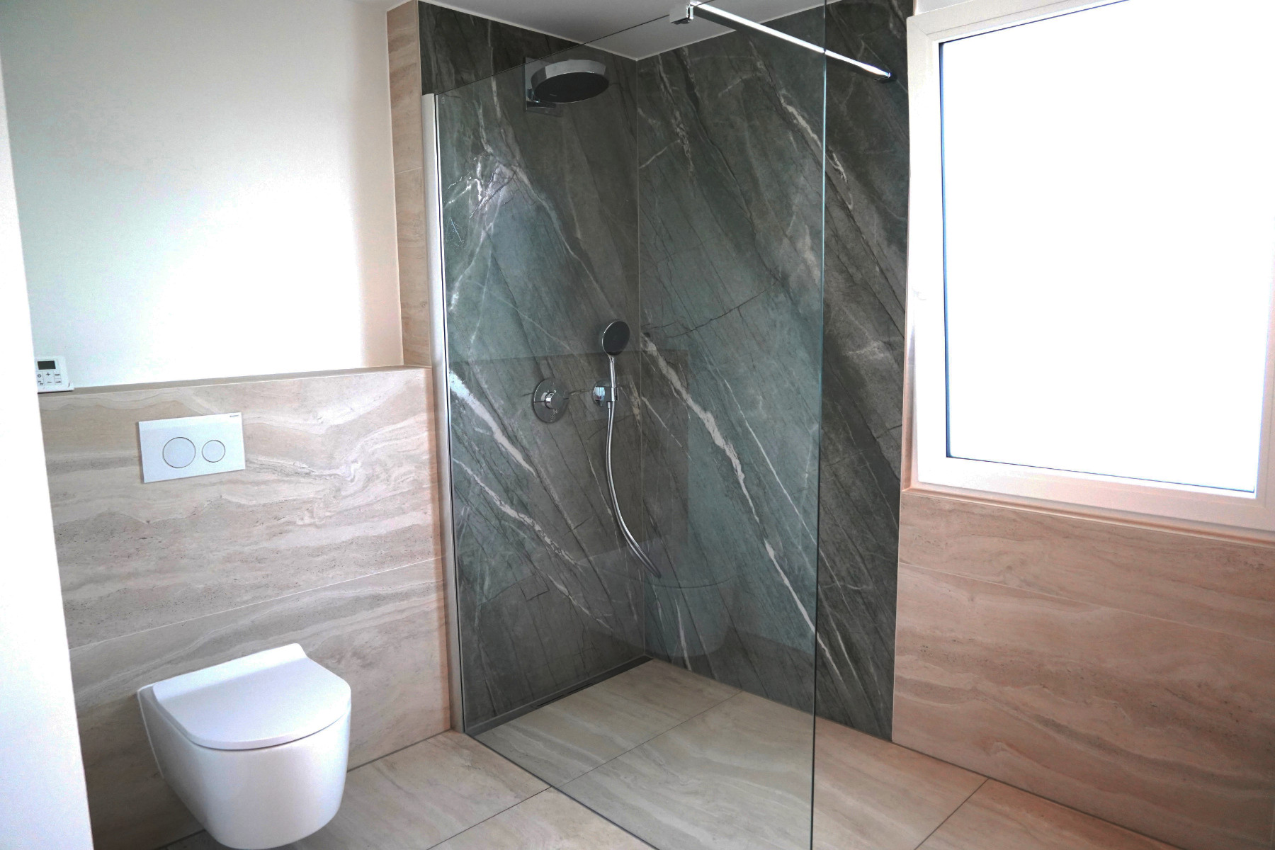 Die Fliesenkombination Tiffany Green und Travertin – farblich das Modernste auf dem Markt.